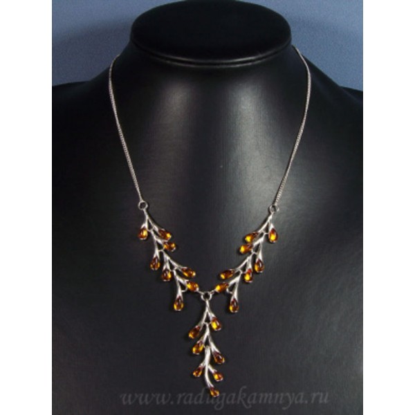 • C925 Колье с янтарем "веточка" св.коньячный, 45см,  15,92гр.