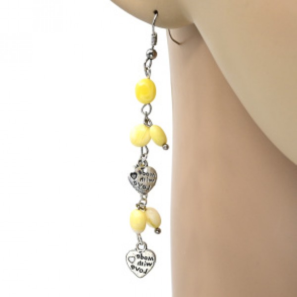 • Серьги с янтарём "гроздья" галтовка молочный с Кулонами, 6,5см, 4,5г