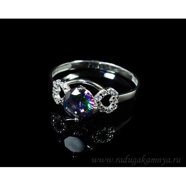 C925 Кольцо с фианитом мистик 1.72г, родиевое покрытие