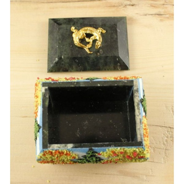 Шкатулка "Роспись ОСЕНЬ" змеевик,ножки и ящерка из бронзы 50*70*55мм