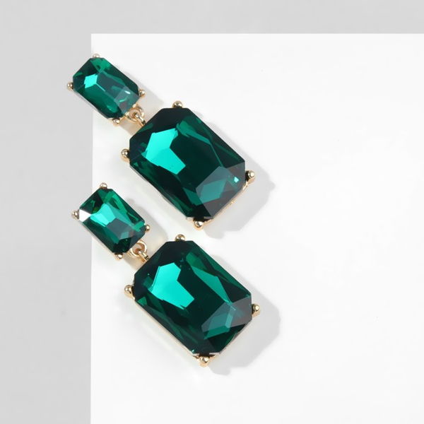 • Серьги со стразами "Клео" классика, цвет изумрудный, цвет золотистый