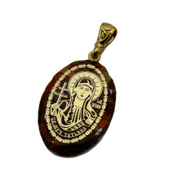 Кулон с янтарем иконка "Святая Мученица Татьяна" овал 21*31мм. (иск.)