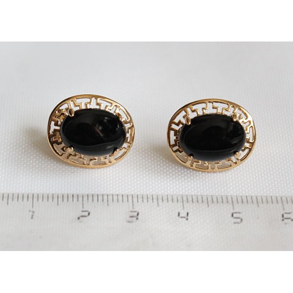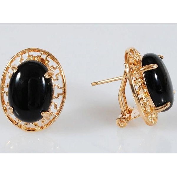 C830 Серьги позолота из оникса черного "греческие"