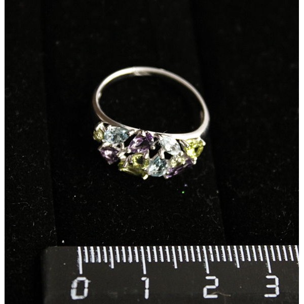 C925 Кольцо 1,96 г, камни аметист, топаз, хризолит, родирование, р-р 18