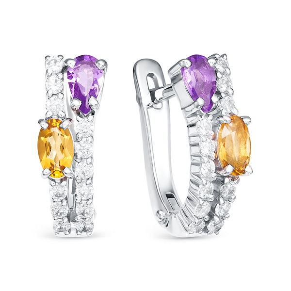 C925 Серьги 3,3г аметист # фианит, цитрин родирование