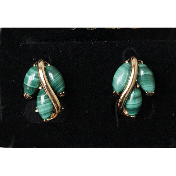 C830 Серьги позолота из малахита, овал 10х8мм замок пусеты