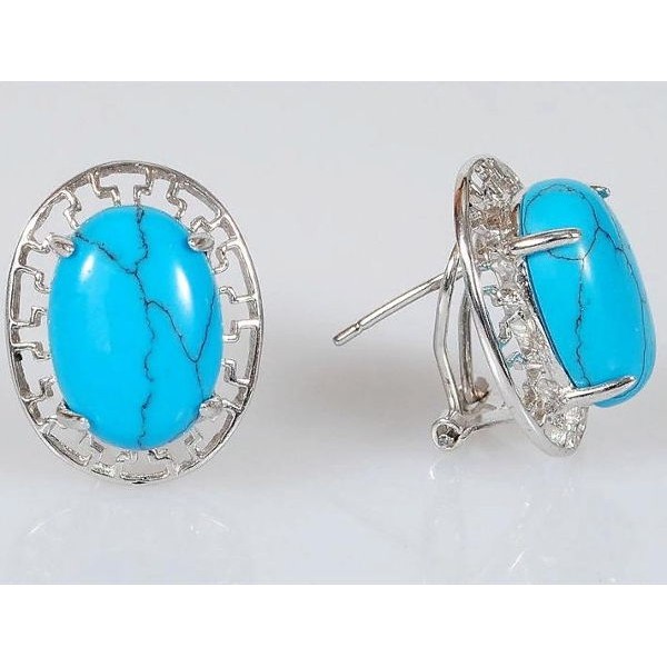 C830 Серьги позолота из бирюзы (имитация), овал 10..