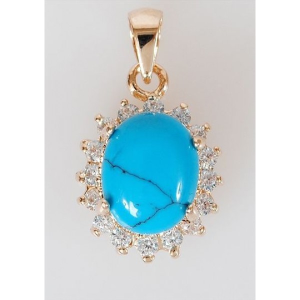 • C830 Кулон позолоченное из бирюзы (имитация) "овал в цирконах"