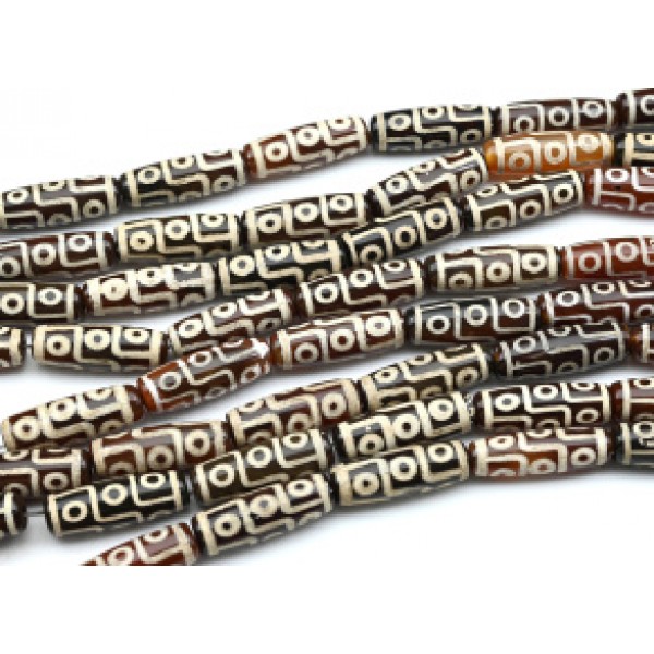 Бусины из агата дзи "9 глаз" бочонок 11*30мм, цв.к..