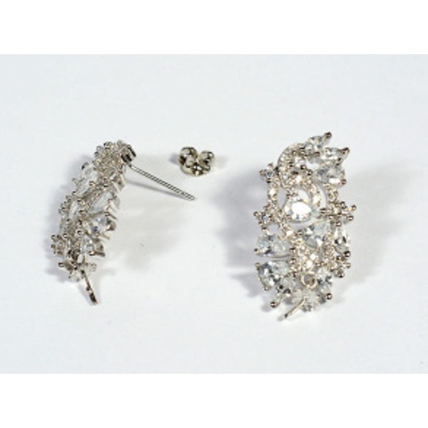 • Швензы с замком гвоздик с фианитами 14*25мм родированные, 1пара (иск.)