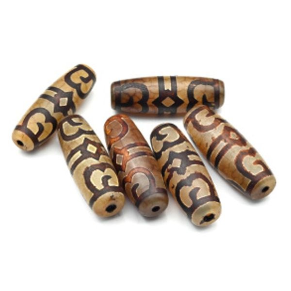 Бусины Дзи "Шапка Дхармы" из агата бочонок 15*40мм, 1 бусина