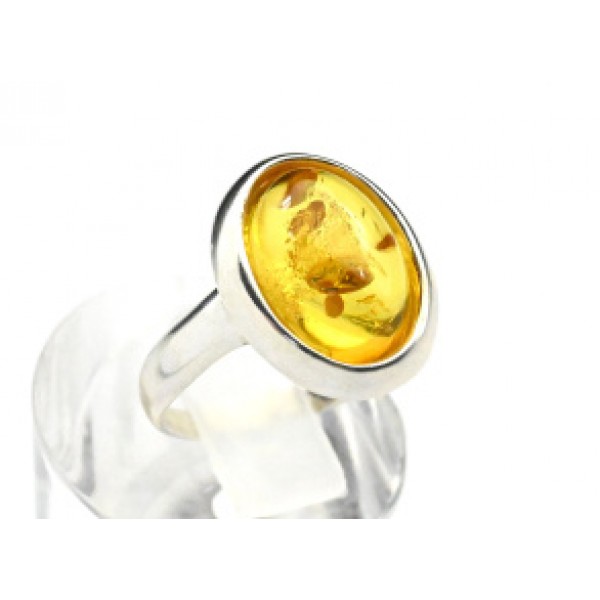 Кольцо с янтарем C925 овал 14*17мм лимонный , 3,49гр (иск.)
