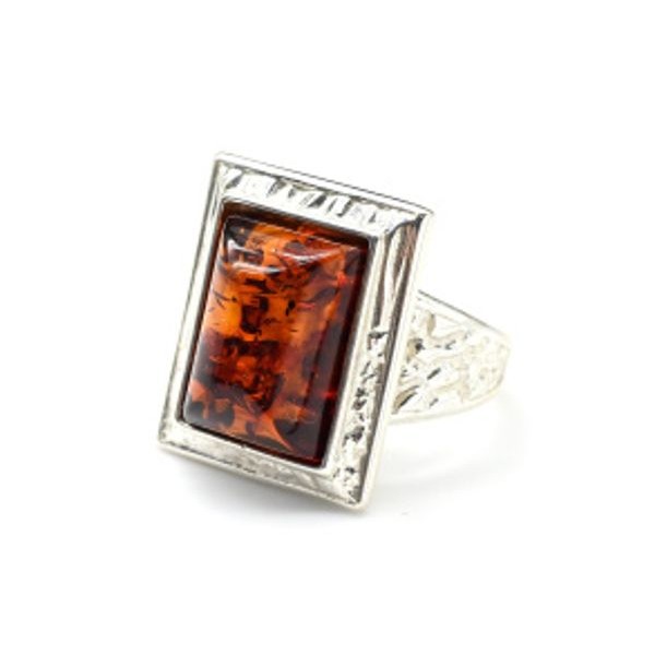Кольцо с янтарем C925 прямоугольник 15*19мм коньячный , 5,6гр (иск.)