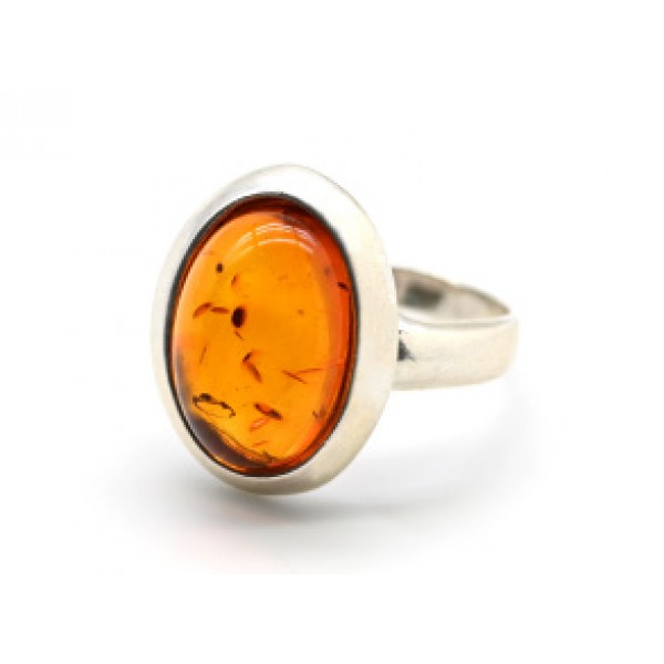 Кольцо с янтарем C925 овал 14*17мм коньячный , 3,33гр (иск.)