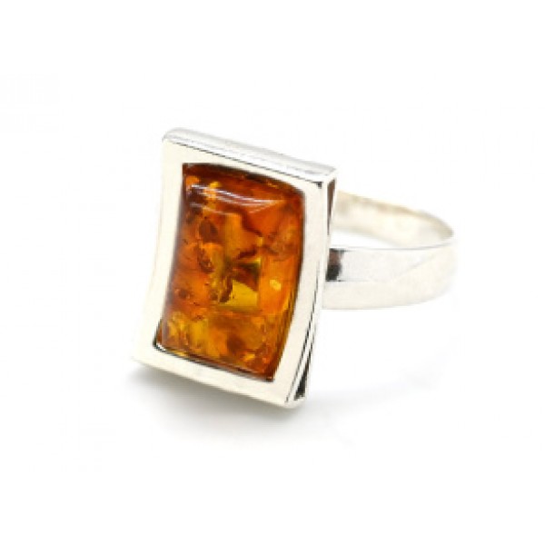 Кольцо с янтарем C925 прямоугольник 12*15мм св.коньячный , 4,28гр (иск.)