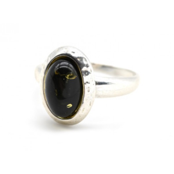 Кольцо с янтарем C925 овал 12*16мм зеленый , 3,05гр (иск.)