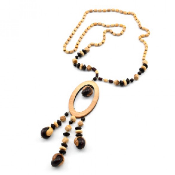 Бусы из дерева с подвеской овал, 78см