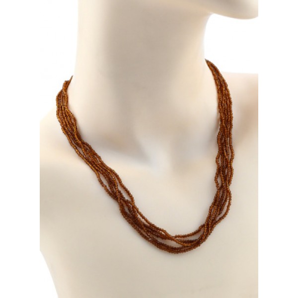 Бусы из циркона 5 нитей шарик гр.2мм цвет коньячный, 46см