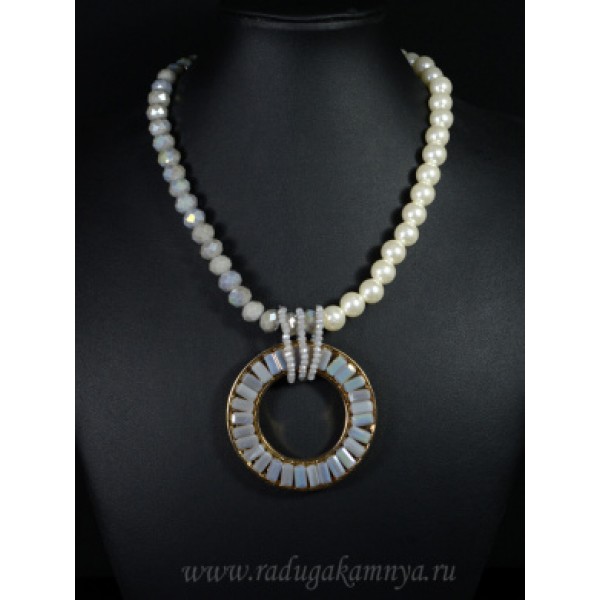 Бусы из майорки шарик 12мм с цирконом кукуруза 10мм, подвеска "Кольцо" цвет белый, серый, 45см