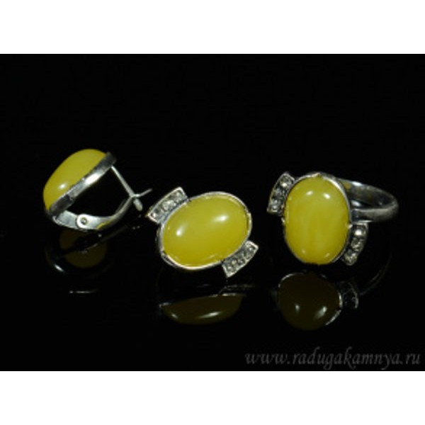 • Набор с янтарём кольцо, серьги овал 16*12мм молочный, 3,6гр. (иск.)