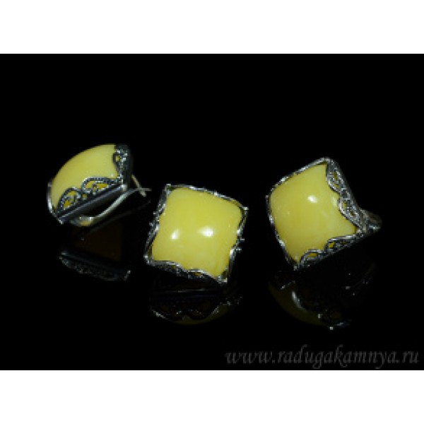 • Набор с янтарём кольцо, серьги ромб 29*29мм молочный, 16,8гр. (иск.)