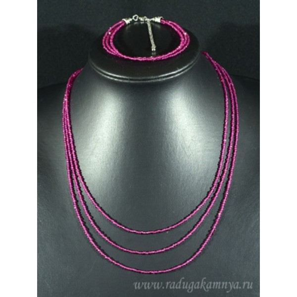Колье с браслетом из шпинели цвет малиновый, 3 нити, шарик гр.2мм, 47см, 19см, 15,7г