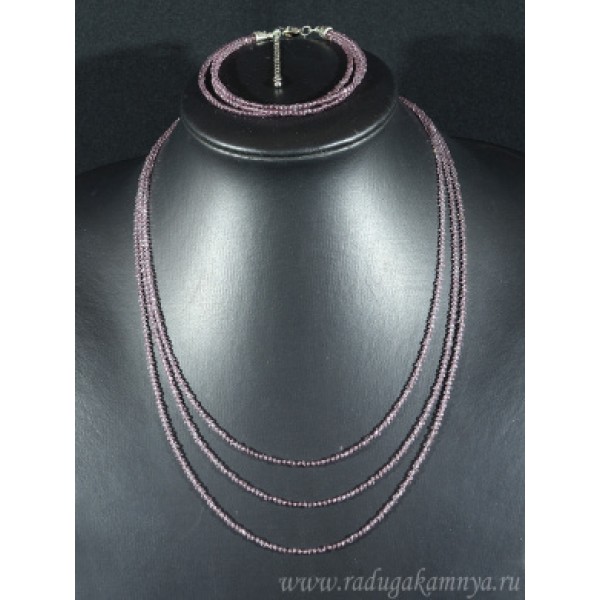 Колье с браслетом из шпинели цвет сиреневый, 3 нити, шарик гр.2мм, 46см, 20см, 13,3г