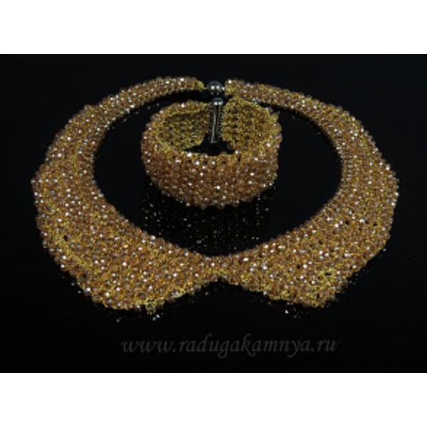 • Колье-воротник и браслет из циркона плетение цвет горчичный, 45см, 18,5см