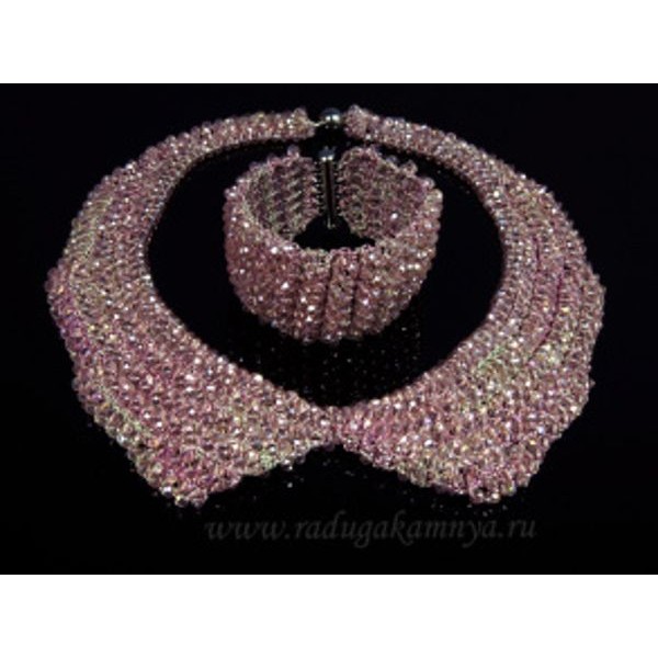 Колье-воротник и браслет из циркона плетение цвет розовый, 45см, 18,5см