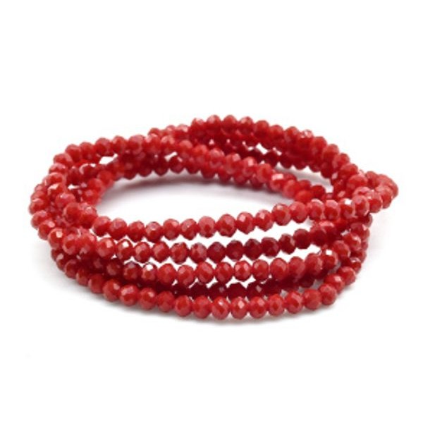 Бусы-браслет на резинке из циркона кукуруза гр.4мм алый матовый, 84см (иск.)