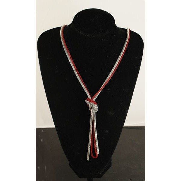 Колье из цепочек-жгутов, цвет красный, цвет серебристый