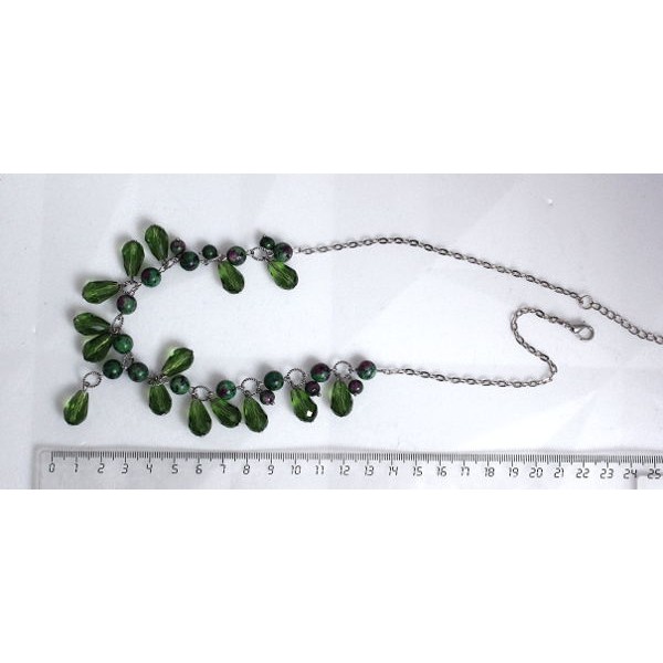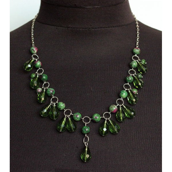 Колье из цоизита, шарик 8 и 6мм, + хрусталь