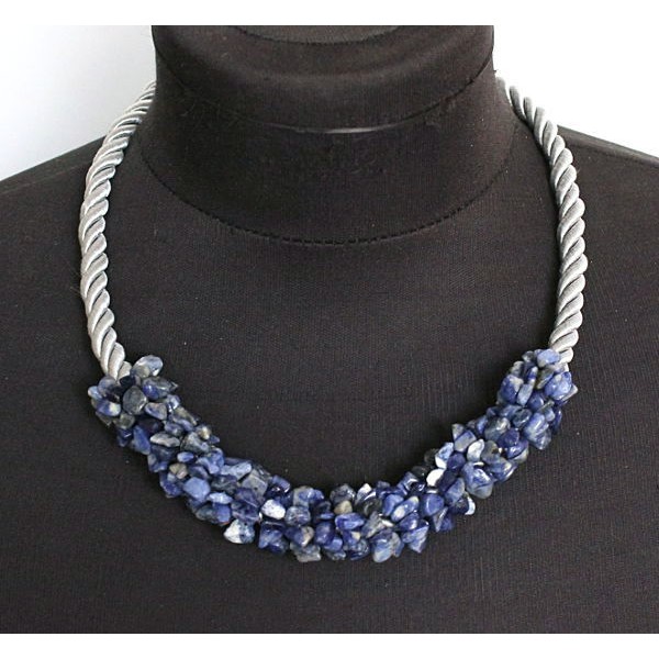 Колье из содалита плетеное на шнуре 9мм