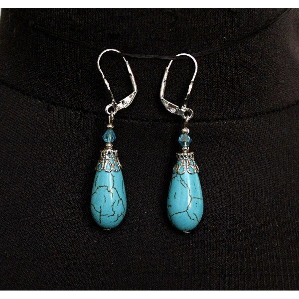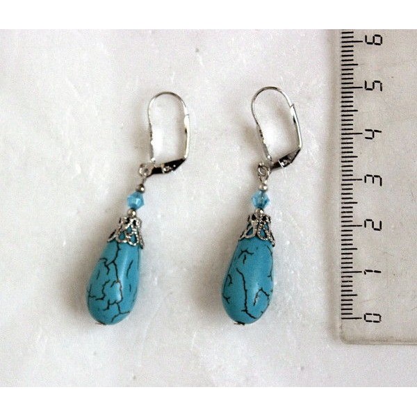 Cерьги из бирюзы (имитация), капля 20х12мм, шапочка "вазочка малая"