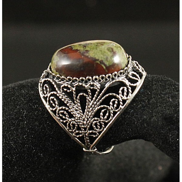 Кольцо из яшмы (гелиотроп), овал 18х13мм, филигрань, ручная работа