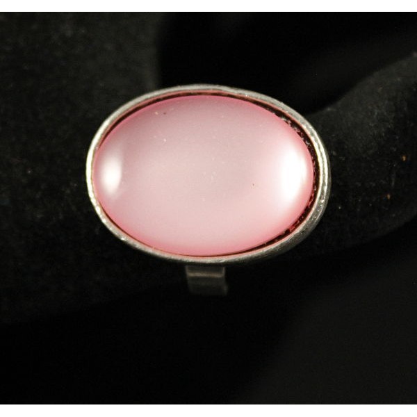 Кольцо пластик розовый (эффект опала), овал 25х18мм, безразмерное (литая оправа)