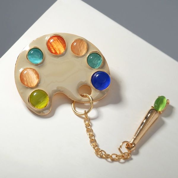 Брошь "Палитра" с кистью, цветная, цвет золотистый