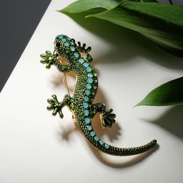 Брошь "Ящерица", цвет зелёный, цвет золотистый