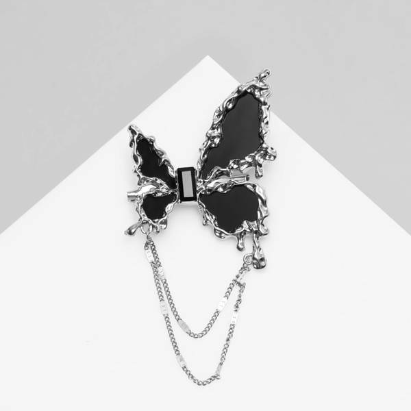 Брошь "Бабочка" тренд, цвет чёрный, цвет серебристый