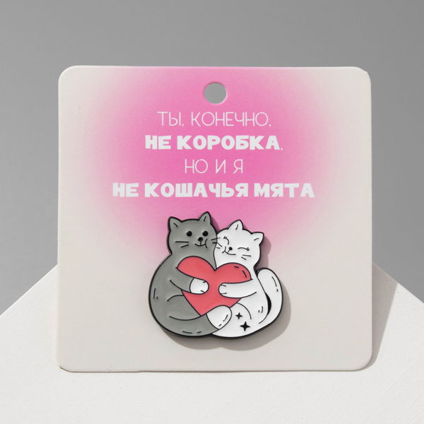 Значок "Котики" влюблённые, цветной в чёрном металле