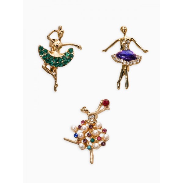 Броши «Балеринки», набор 3 шт. МИКС, цвет золотистый