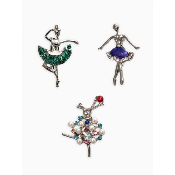 Броши «Балеринки», набор 3 шт. МИКС, цвет серебристый