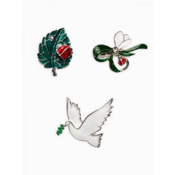 Броши «Голубь, листик, подснежник», набор 3 шт. цветной, цвет серебристый