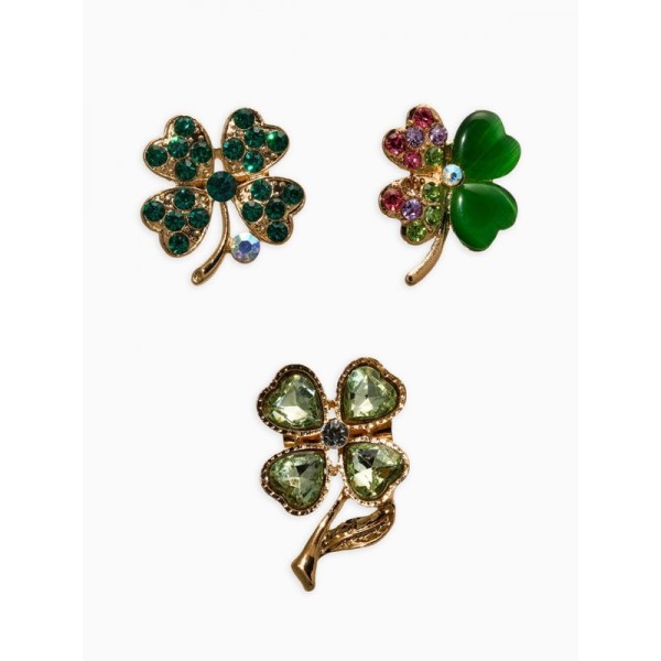 Броши «Клевер», набор 3 шт. зелёные, цвет золотистый