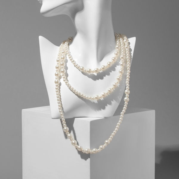 Бусы многослойные жемчуг, шар 4+8, цвет белый, цвет серебристый 150 см