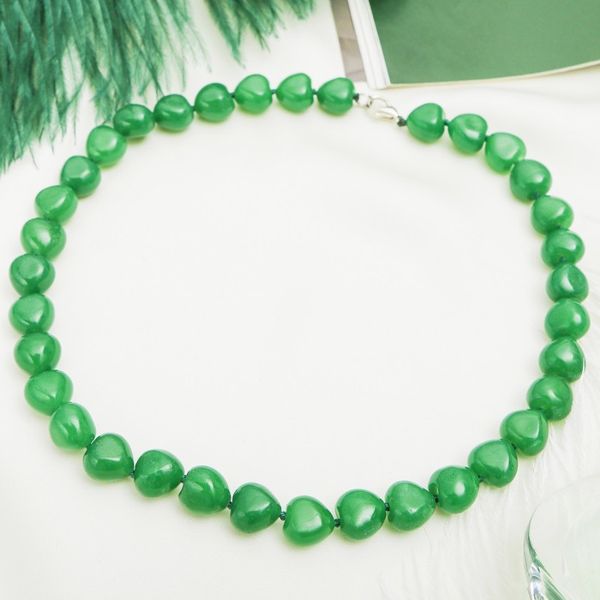 Бусы авантюрин зеленый сердце среднее, 45 см