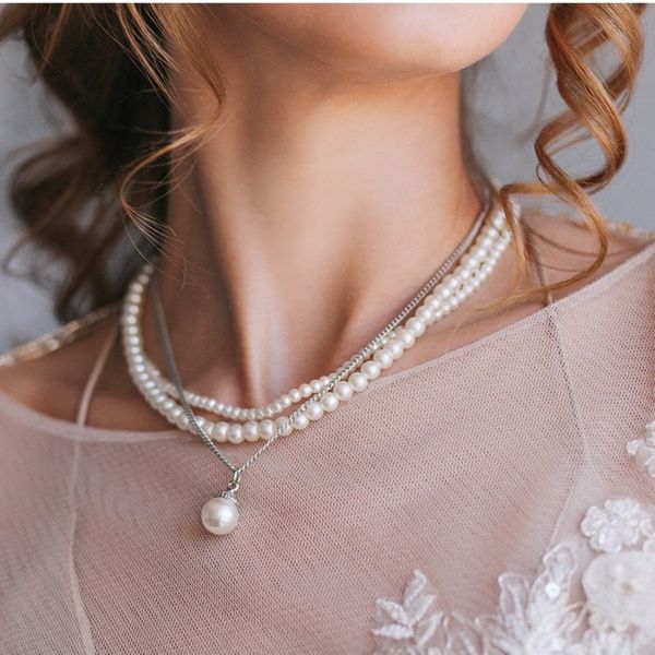 • Бусы 3 яруса "Рошель" капля, цвет белый, цвет серебристый, 40см (пластик, бижутерный сплав)