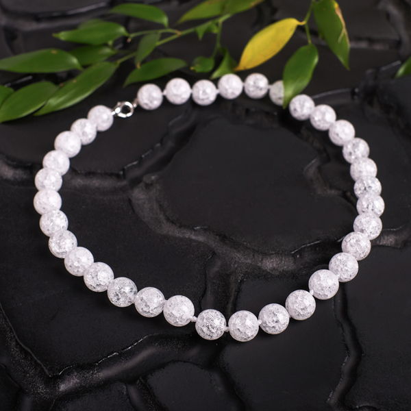 Бусы шар №12 через узел "Кварц сахарный", цвет белый, 45см