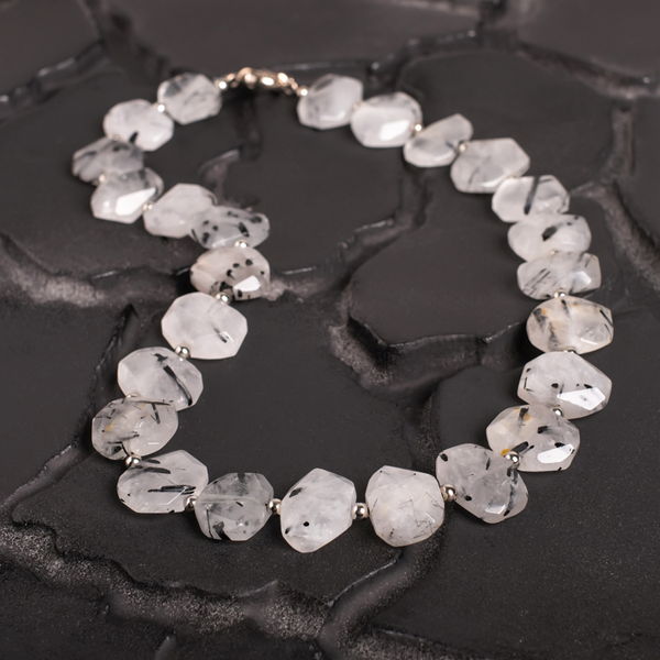 Бусы из волосатика (черные "волосы"), плоские прямоугольники, огранка