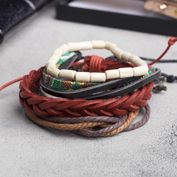 • Браслет кожа "Радужный", цветной (дерево, натуральная кожа, текстиль)